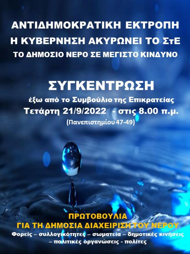 Συγκέντρωση για το νερό την Τετάρτη 21/9/2022 στις 8.00 π.μ. έξω από το ΣτΕ