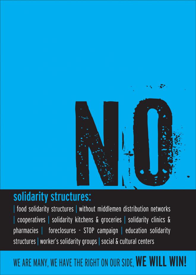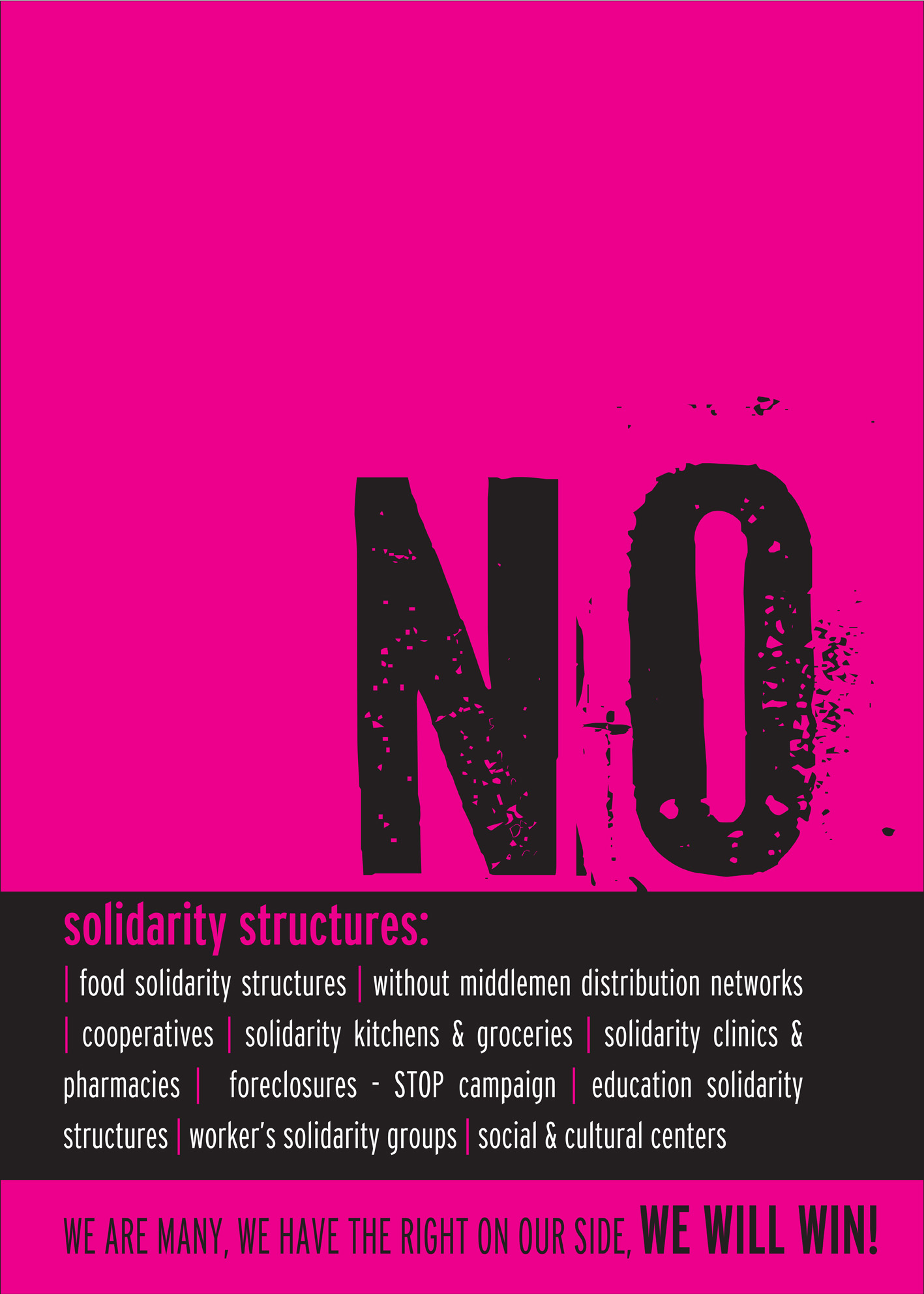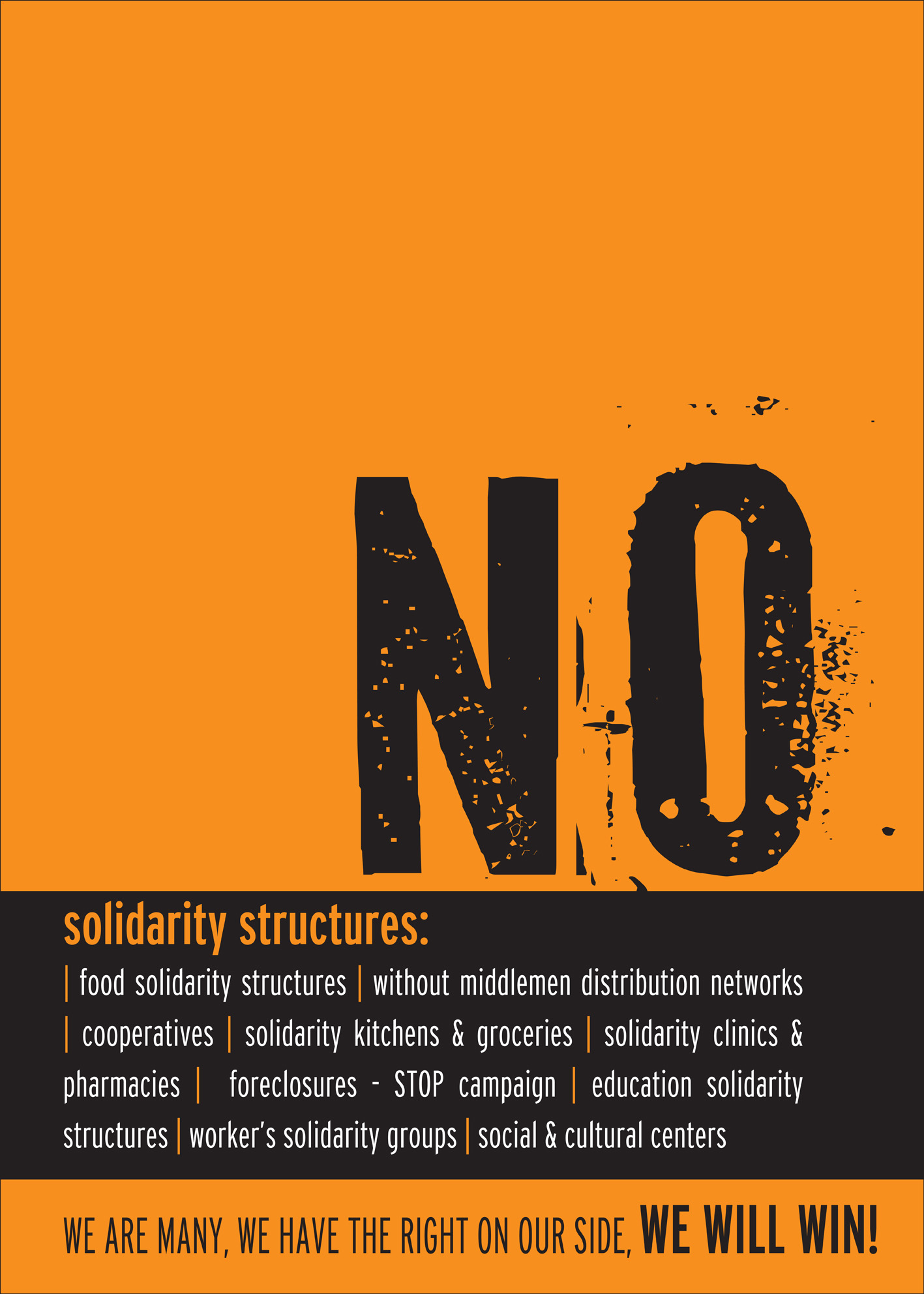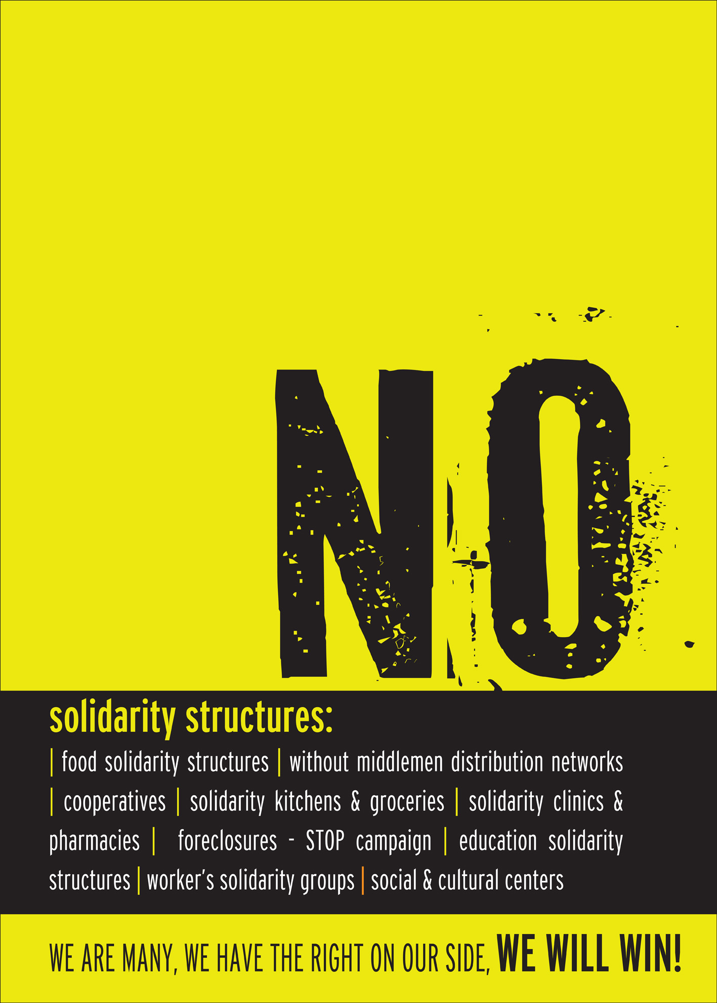 The grassroots solidarity movement, on hearing the news of the referendum, mobilized immediately throwing all its forces into the NO campaign. We attach the call of many dozens solidarity structures towards the Greek people and the poster of the solidarity movement’s NO campaign, which we ask you to disseminate.