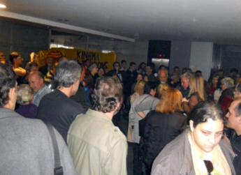 Με το σύνθημα “κανένα σπίτι στα χέρια τραπεζίτη” δεκάδες πολίτες συγκεντρώθηκαν στο Ειρηνοδικείο Νέας Ιωνίας την Τετάρτη 29.10.2014 με στόχο τη ματαίωση δυο πλειστηριασμών κατοικιών πολιτών από τη