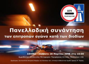 Με αφορμή την αλλαγή του πολιτικού τοπίου στη χώρα μας, αλλά και τις πρωτοφανείς διώξεις των εταιρειών, μέσω εξοντωτικών προστίμων, διαταγών πληρωμής, αγωγών και ποινικών διώξεων εναντίον εκατοντάδων πολιτών, Επιτροπές Αγώνα κατά των Διοδίων από όλη την Ελλάδα οργανώνουν ημερίδα.