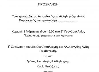 Το Δίκτυο Ανταλλαγής και Αλληλεγγύης Αγίας Παρασκευής σας καλεί στην συνέλευση του την Κυριακή