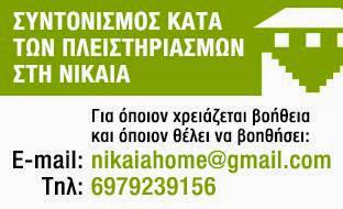 Την Τετάρτη 12 Νοέμβρη δημιουργήθηκε ο «Συντονισμός Συλλογικοτήτων Κατά των Πλειστηριασμών στη Νίκαια». Πρόκειται για μία κίνηση που σκοπό έχει να σταθεί στο πλευρό των συμπολιτών μας, οι οποίοι χάνουν την πρώτη τους κατοικία εξαιτίας χρεών σε τράπεζες και δημόσιους οργανισμούς. Δυστυχώς σήμερα, ο ανήμπορος, ο πτωχευμένος πολίτης δε μπορεί να απευθυνθεί στο κράτος για να του εξασφαλίσει το θεμελιώδες δικαίωμα στη στέγη. Αντίθετα, το ελληνικό κράτος του επιτίθεται, τον τιμωρεί, παραχωρώντας στην ουσία τους κόπους μιας ζωής στα χέρια επιτηδείων. Η μόνη λύση στο πρόβλημα, το οποίο μας αφορά όλους, είναι η αλληλεγγύη. Μόνο με την ενότητα και τη δυναμική παρέμβασή μας μπορούμε πλέον να σταματήσουμε την καταστροφή, αφού οι νόμοι χρησιμοποιούνται ενάντια στον πολίτη. Πρέπει να αγωνιστούμε γιατί η απάθεια τους αποθρασύνει.