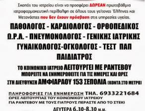 Ιατρείο Κοινωνικής Αλληλεγγύης Κολωνού - Ακ. Πλάτωνα - Σεπόλια Κοινωνικά Ιατρεία Φαρμακεία Αλληλεγγύης ΕΠΙΚΟΙΝΩΝΗΣΤΕ AMΕΣΑΔΙΑΔΩΣΤΕ: Tweet ΦΩΤΟΓΡΑΦΙΕΣ (2) ΣΤΟΙΧΕΙΑ ΕΠΙΚΟΙΝΩΝΙΑΣ Αμφιαράου 153Δήμος Αθηναίων Τηλ: 6933 221684 pankefota@yahoo.grhttp://sineleusikolonou.blogspot.gr Υλικά