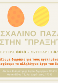 Το Δίκτυο Αλληλεγγύης ΠΡΑΞΗ θα πραγματοποιήσει και φέτος bazaar πασχαλινών δώρων, με στόχο την κάλυψη ορισμένων λειτουργικών εξόδων του δικτύου (ηλεκτρικό, ενοίκιο κλπ), αλλά και την εξωστρεφή δράση...