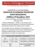 ΕΥΑΓΓΕΛΙΣΤΡΙΑΣ 25, 14 671 ΝΕΑ ΕΡΥΘΡΑΙΑΠΑΡΑΓΩΓΟΙ ΕΛΛΗΝΙΚΩΝ ΠΡΟΙΟΝΤΩΝΧΩΡΙΣ ΜΕΣΑΖΟΝΤΕΣΣάββατο 29 Νοεμβρίου 2014Τατοίου & Σεβδικίου (Οικόπεδα Παπαστράτου).9:00 μέχρι 15:00Το Δίκτυο Αλληλεγγύης “...