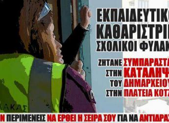 Σήμερα στο Δημαρχείο της Αθήνας βρεθήκαμε οι καθαρίστριες του Υπουργείου Οικονομικών, οι σχολικοί φύλακες και οι εκπαιδευτικοί της δευτεροβάθμιας εκπαίδευσης.