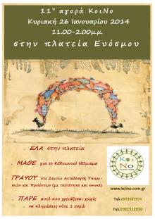 Για τη διοργάνωση της 11ης αγοράς του ΚΟΙ.ΝΟ που θα γίνει στις 26-1-2014, θα συσταθεί τετραμελής ομάδα εργασίας  με αμοιβή 20 ΚοιΝο.