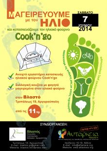 Το Σάββατο 7 Ιουνίου και από τις 11 το πρωί θα έχετε τη δυνατότητα να ενημερωθείτε γύρω από το μαγείρεμα με ηλιακό φούρνο και να συμμετέχετε (12 - 2:30μμ) στο ανοιχτό Εργαστήριο κατασκευής ηλιακού φούρνου cook n' go. Τέλος, θα δωθεί σε όλους μας η δυνατότητα να γνωριστούμε καλύτερα και να χτίσουμε δημιουργικές ανθρώπινες σχέσεις, απολαμβάνοντας τις γεύσεις από τα φαγητά που θα μαγειρευτούν σε ηλιακούς φούρνους.