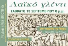 Το Σάββατο 13 Σεπτέμβρη στις 8 το βράδυ η Εργατική Λέσχη Περιστερίου σας καλεί να διασκεδάσουμε όλοι μαζί στο Λαϊκό γλέντι της που θα γίνει στην ταράτσα της Λέσχης.