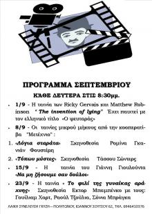 Προβολές Σεπτεμβρίου 2014 στο Γκύζη Monday, 8 September, 2014 - 20:30Συνδεσμοι: http://gyzi.espivblogs.ne SHARE IT: Tweet CONTACT INFORMATION Σούτσου 62Δήμος Αθηναίων