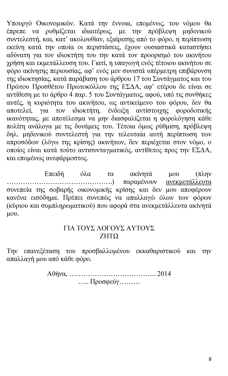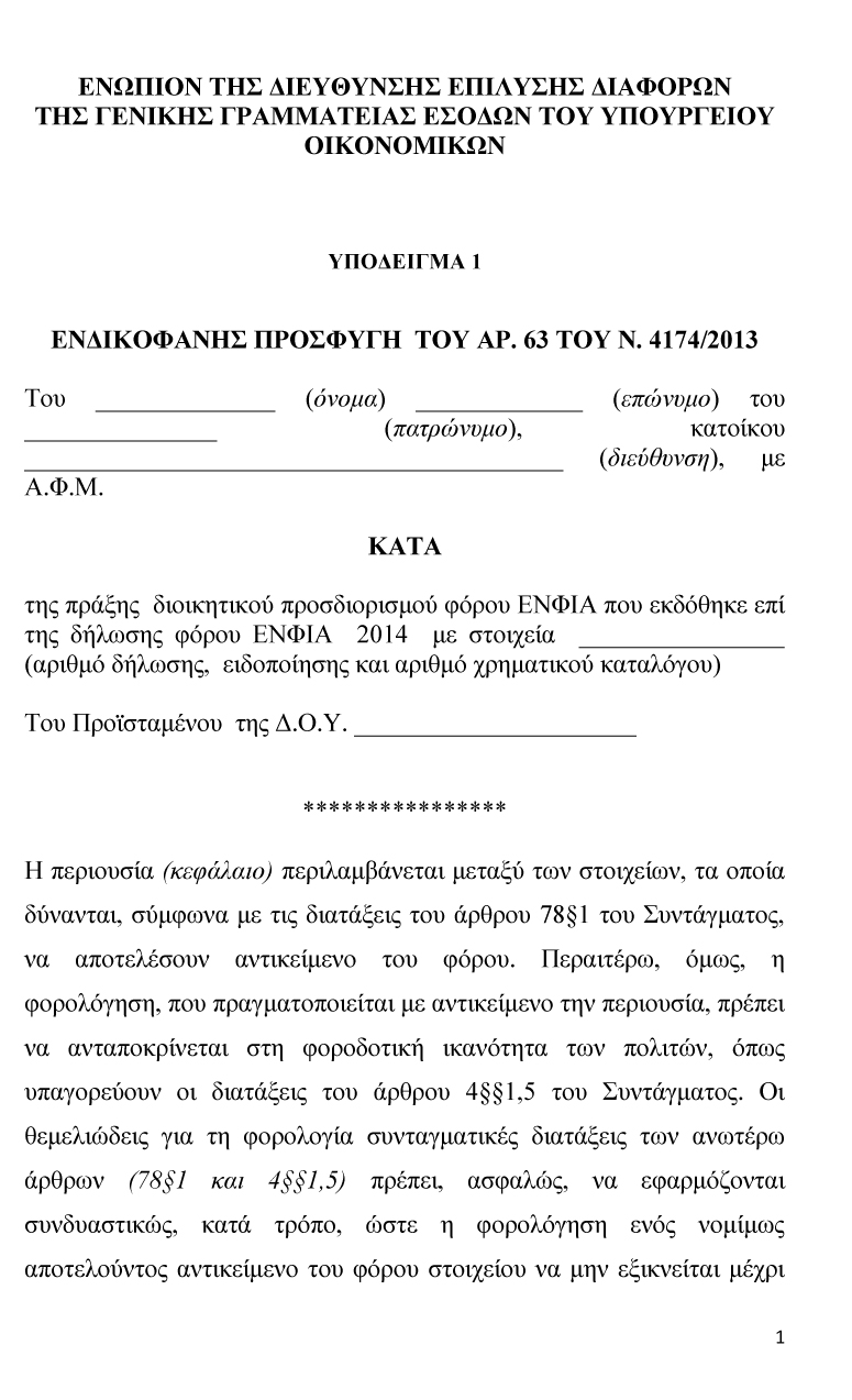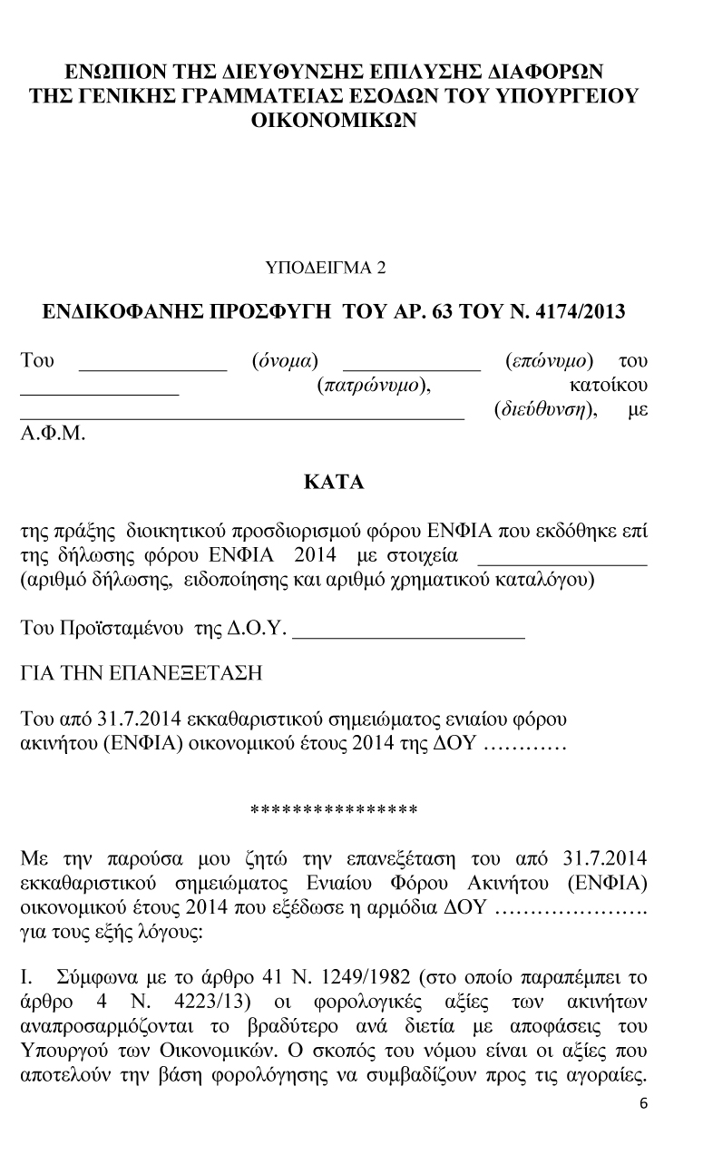 Υποδείγματα ενδικουφανούς προσφυγής κατά ΕΝΦΙΑ