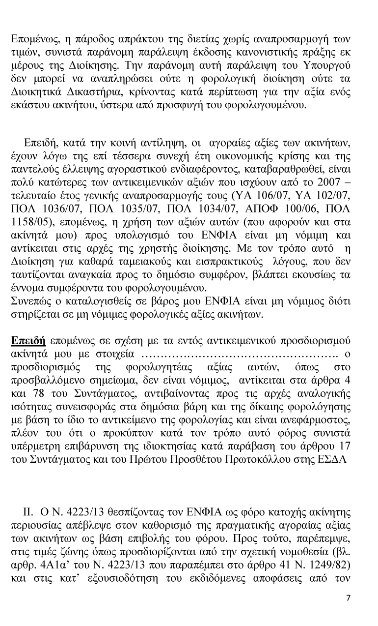 Το υπόδειγμα 2 αφορά Αντισυνταγματικότητα Διατάξεως ΕΝΦΙΑ