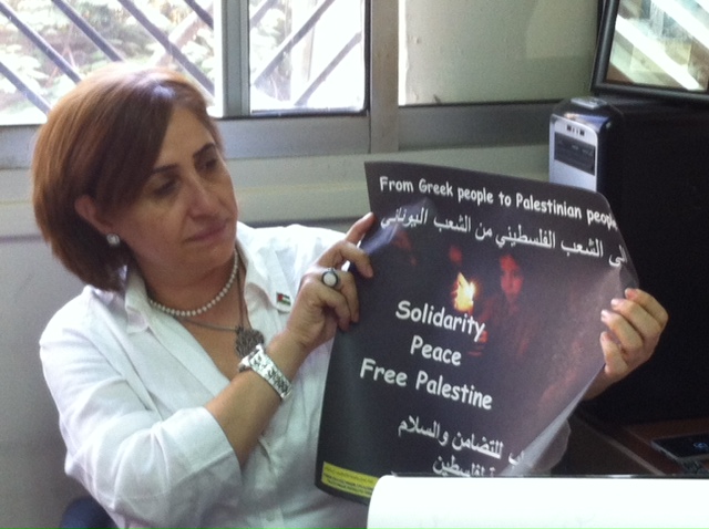 Με μεγάλη συγκίνηση η κ. Mai Aref, υπεύθυνη δημοσίων σχέσεων και επικοινωνίας της Παλαιστινιακης Ερυθρας Ημισελινου μας ευχαρίστησε για την αποστολη βοήθειας.