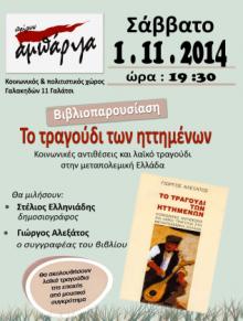 Η εκδήλωση θα γίνει στον κοινωνικό και πολιτιστικό χώρο “παίρνω Αμπάριζα” τοΣάββατο 1 Νοεμβρίου 2014 , ώρα:19:30