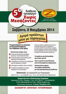 Το Δίκτυο Αλληλεγγύης Ζωγράφου διοργανώνει το Σάββατο 8 Νοεμβρίου την 5η διάθεση προϊόντων Χωρίς μεσάζοντες.Η αγορά θα γίνει αποκλειστικά και μόνο με παραγγελία.Τον τιμοκατάλογο με τα προϊόντα θα τον βρείτε εδώ.Για ηλεκτρονική παραγγελία πατήστε εδώ