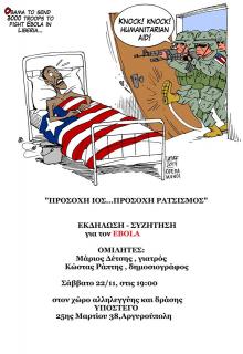 Εκδήλωση – Συζήτηση στο ΥΠΟΣΤΕΓΟ Saturday, 22 November, 2014 - 19:00ΕΚΔΗΛΩΣΗ – ΣΥΖΗΤΗΣΗ για τον EBOLA ΟΜΙΛΗΤΕΣ: Μάριος Δέτσης , γιατρός Κώστας Ράπτης , δημοσιογράφος SHARE IT: Tweet Συνδεσμοι: http://ypostego.wordpress.com/ CONTACT INFORMATION 25ης Μαρτίου 38, ΑργυρούποληΔήμος Ελληνικού-Αργυρούπολης