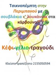 Τσικνοπέμπτη στην Περιμπανού Thursday, 12 February, 2015 - 18:00Συνδεσμοι: https://www.facebook.com/pages/%CE%A0%CE%B5%CF%81%CE%B9%CE%BC%CF%80%CE%B1%CE%BD%... SHARE IT: Tweet CONTACT INFORMATION Χατζηδάκη 9, Άνω Πατήσια Δήμος Αθηναίων