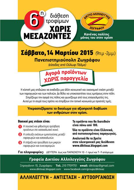 Το Δίκτυο Αλληλεγγύης Ζωγράφου, διοργανώνει για 6η φορά διάθεση προϊόντων Χωρίς Μεσάζοντες
