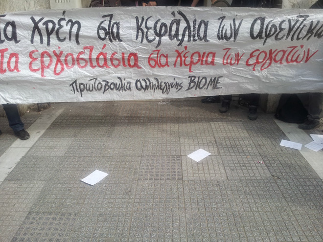 Μπροστά στην ενορχηστρωμένη προσπάθεια της πρώην εργοδοσίας με συμμάχους δυστυχώς και κρατικούς λειτουργούς, οι εργαζόμενοι και οι αλληλέγγυοι της ΒΙΟ.ΜΕ. δεν πρόκειται να κάτσουμε με σταυρωμένα τα χέρια. Δεν θα αφήσουμε καμία δικαστική απόφαση, κανένα νομικό τερτίπι και κανένα αφεντικό να παίξει άλλη μια φορά με τις ανάγκες μας και ότι έχουμε ήδη κατακτήσει".