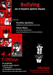 Με αφορμή την προβολή της ταινίας, θα συζητήσουμε για τον εκφοβισμό ή bullying. Σχετίζεται με την υποβάθμιση του δημόσιου σχολείου και των κοινωνικών δεσμών; Είναι η βία στα σχολεία «ατομικό» πρόβλημα; Γιατί συμπεριφορές που μέχρι πρότινος τις λέγαμε, νοιώθαμε και αντιμετωπίζαμε με άλλο τρόπο, ξαφνικά χαρακτηρίζονται ως “bullying”; Παίζει ρόλο η εφηβεία και τι αναταράξεις φέρνει στους ενήλικες (εκπαιδευτικούς, γονείς) στο να αντιμετωπίσουν τα παιδιά;
