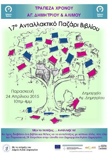 17ο Ανταλλακτικό Παζάρι Βιβλίου της Τράπεζας Χρόνου Αγ. Δημητρίου & Αλίμου (24/4)