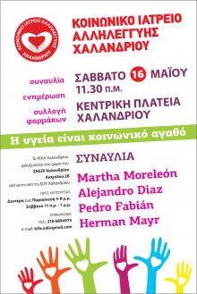 Το Κοινωνικό Ιατρείο Αλληλεγγύης Χαλανδρίου οργανώνει εκδήλωση ενημέρωσης και συλλογής φαρμάκων το Σάββατο 16 Μαϊου, 11.30 π.μ. στην Κεντρική Πλατεία Χαλανδρίου.