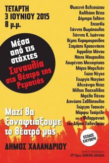 Η μεγάλη συναυλία στο θέατρο της Ρεματιάς, με τίτλο "Μέσα από τις στάχτες", μετατέθηκε για την Τετάρτη 3 Ιούνη στις 8μμ.