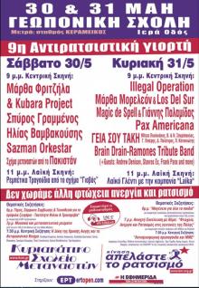 Στη Γεωπονική Σχολή, το Σαββατοκύριακο 30 & 31 Μάη θα γίνει η 9η Αντιρατσιστική Γιορτή του Κυριακάτικου Σχολείου Μεταναστών και της Κίνησης "Απελάστε το Ρατσισμό" με κεντρικό σύνθημα: "Παράνομοι οι φασίστες, όχι οι μετανάστες και οι πρόσφυγες"