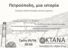 Την Τρίτη 9 Ιουνίου, στις 8 το βράδυ συζητάμε για την ιστορία της ανάπτυξης της πόλης μας με τον πολιτικό μηχανικό του Δήμου Πετρούπολης Νικόλα Κολυβά.