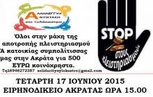 Λέμε Όχι στους πλειστηριασμούς Δομή: Αλληλεγγύη - Αντίσταση στο Ξυλόκαστρο Wednesday, 17 June, 2015 - 15:00Όλοι στην μάχη αποτροπής πλειστηριασμού Ά κατοικίας συμπολίτισσας μας στην Ακράτα για 500 ευρώ κοινόχρηστα. SHARE IT: Tweet Συνδεσμοι: Λέμε Όχι στους πλειστηριασμούς