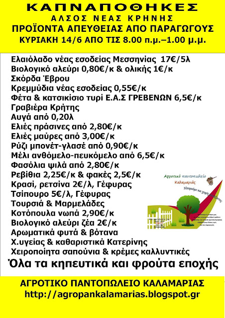 "Χωρίς Μεσάζοντες" στην Καλαμαριά Δομή: Αγροτικό Παντοπωλείο Καλαμαριάς Sunday, 14 June, 2015 - 08:00 SHARE IT: Tweet Συνδεσμοι: http://www.agropankalamarias.blogspot.gr