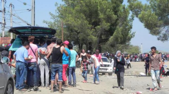 Προχωρώντας ακόμη περισσότερο ο κόσμος αυξάνεται.  Η εικόνα σοκάρει. Ένας ατελείωτος σκουπιδότοπος και πάνω από 1500 άνθρωποι όλων των ηλικιών να περιμένουν για αρκετές ώρες κάτω από τον καυτό ήλιο να περάσουν τα σύνορα και να συνεχίσουν το ταξίδι τους μέσω της γειτονικής χώρας προς την Βόρεια Ευρώπη. Πάνω από 1500 άνθρωποι κάθονται μέσα στον ήλιο σε αυτοσχέδιες ουρές και ομάδες. Μπροστά τους ένα συρματόπλεγμα και από την άλλη πλευρά οπλισμένοι άνδρες από τις δυνάμεις ασφαλείας της ΠΓΔΜ. Ανοίγουν και κλείνουν τα σύνορα και επιβλέπουν την διέλευση. Άνθρωποι όλων των ηλικιών περιμένουν να ακούσουν την φράση  «now this group» από τους άνδρες των δυνάμεων ασφαλείας της ΠΓΔΜ.