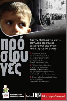 Το Κοινωνικό Ιατρείο Αλληλεγγύης Κορίνθου σας προσκαλεί Τετάρτη 16 Σεπτεμβρίου και ώρα 8.00 μμ στο πάρκο του Συνοικισμού σε ανοικτή εκδήλωση με θέμα το προσφυγικό που λαμβάνει ανεξέλεγκτες διαστάσεις.
