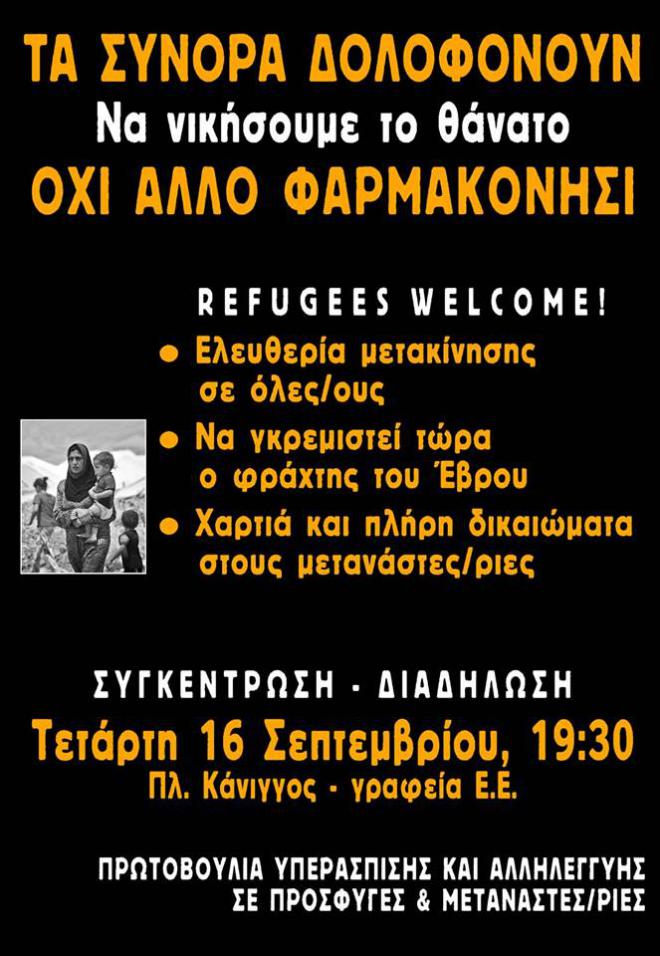 Συγκέντρωση στην Πλ. Κάνιγγος για τους πρόσφυγες (16/9)