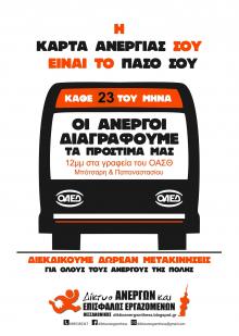 Κάθε 23 του μήνα εμείς οι άνεργοι διαγράφουμε πρόστιμα ΟΑΣΘ και διεκδικούμε δωρεάν μετακινήσεις