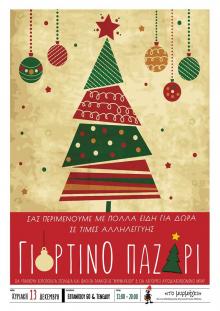 Την Κυριακή 13 Δεκεμβρίου 2015 στο «Μυρμήγκι», Επτανήσου 60 και Τενέδου, από τις 11 το πρωί ως τις 8 το βράδυ σας περιμένουμε με πολλά είδη για δώρα, χειροποίητα καλούδια, κεριά και άλλα! Τα έσοδα θα διατεθούν για τις ανάγκες της δομής μας, οι οποίες είναι αυξημένες.
