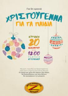 Το Δίκτυο Αλληλεγγύης Ζωγράφου διοργανώνει για 5η συνεχή χρονιά, Χριστουγεννιάτικη Γιορτή για τα παιδιά, την Κυριακή 20/12 στην πλατεία Αγ. Γερασίμου.