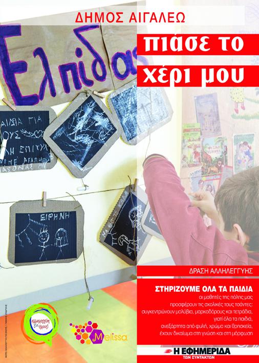 Με τη συμμετοχή του Δήμου Αιγάλεω συνεχίζεται η καμπάνια «Πιάσε το χέρι μου», την οποία διοργανώνουν από κοινού η «Εφημερίδα των Συντακτών», η «Αλληλεγγύη για Όλους» και το Δίκτυο μεταναστριών στην Ελλάδα «Μέλισσα».