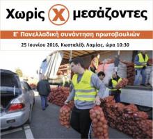 Το Σάββατο 25 Ιουνίου 2016, θα πραγματοποιηθεί η 5η Πανελλαδική Συνάντηση των Πρωτοβουλιών «Χωρίς Μεσάζοντες», στο Κωσταλέξι Λαμίας.