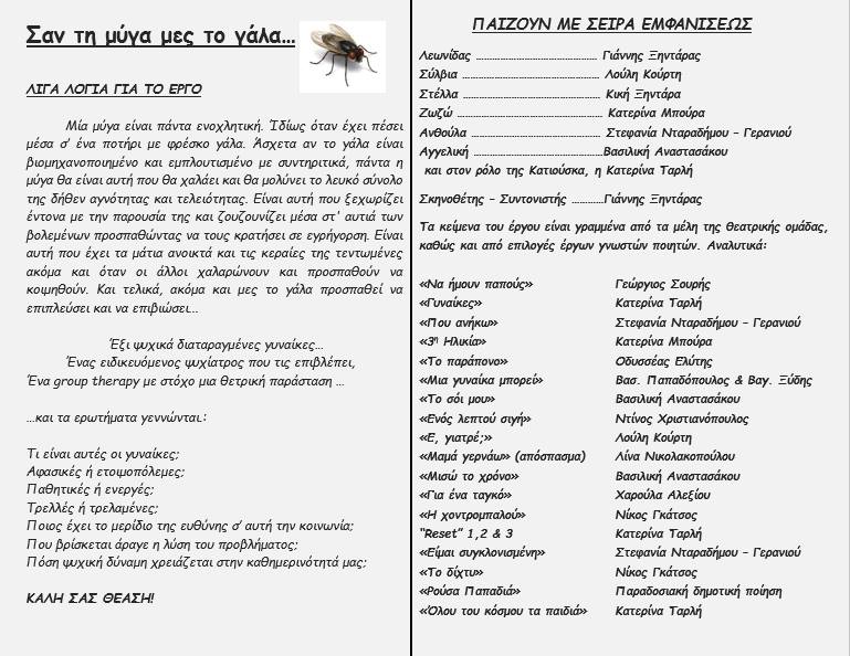 Θεατρική παράσταση: "Σαν τη μύγα μες το γάλα"