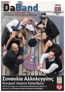 Το ραντεβού είναι για το ερχόμενο Σάββατο 8 Οκτωβρίου, στις 8:00 το βράδυ, στην κεντρική πλατεία Χαλανδρίου και όσοι βρεθούν εκεί θα έχουν την ευκαιρία να παρακολουθήσουν live πρόγραμμα από το μουσικό σχήμα Da Band με τη Ζωή Ναλμπάντη και την Ερασμία Μαρκίδη στα φωνητικά, τονΣταύρο Πετσαλάκη στα πλήκτρα, τον Ευθύμη Αντωνόπουλο στην κιθάρα, τον Σπύρο Πετρουνάκο στο μπάσο και τον Αλέξανδρο Μαμμόπουλο στα τύμπανα. Οι Da Band υπόσχονται να αναλάβουν τη διασκέδασή μας με ένα πολύ δυνατό soul - funk πρόγραμμα γνωστών ακουσμάτων και με τις ποικίλες μουσικές πορείες και επιρροές τους να μετατρέψουν σε ένα κεφάτο, χορευτικό πάρτυ το Σαββατόβραδο όσων βρεθούν στο Χαλάνδρι.
