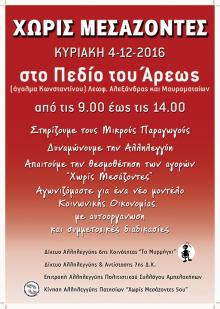 ΤΗΝ ΚΥΡΙΑΚΗ 4/12, στο Πεδίο του Άρεως, (άγαλμα Κωνσταντίνου, Μαυροματαίων και Αλεξάνδρας) από τις 9 το πρωί έως τις 2 το μεσημέρι.