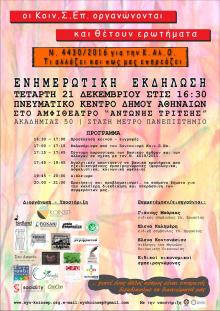 Ο Συντονισμός Κοιν.Σ.Επ. σάς προσκαλεί στην ενημερωτική εκδήλωση: "Οι Κοιν.Σ.Επ. οργανώνονται και θέτουν ερωτήματα: Ν. 4430/2016 για την Κ.Αλ.Ο. – Τι αλλάζει και πως μας επηρεάζει".