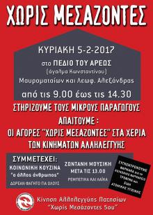 ΤΗΝ ΚΥΡΙΑΚΗ 5/2/2017, στο Πεδίο του Άρεως, άγαλμα Κωνσταντίνου, Μαυροματαίων και Αλεξάνδρας, από τις 9 το πρωί έως τις 14.30 το μεσημέρι.