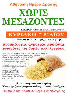 Δράση Χωρίς Μεσάζοντες στο κέντρο της Αθήνας, την Κυριακή 7 Μαίου, στο Πεδίον του Άρεως (άγαλμα Κωνσταντίνου), από τις 9.00 έως τις 14.30.