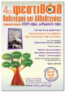 Την Τετάρτη 8 Μαρτίου και ωρα 20:00 στα πλαίσια του "4ου Φεστιβάλ πολιτισμού & αλληλεγγύης", θα παρουσιαστεί το βιβλίο του Κων/νου Δέδε "Με τα μάτια της αγάπης".