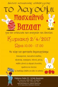 Ετοιμαζόμαστε! Αυτή την Κυριακή, 10 το πρωί με 5 το απόγευμα. Μια όμορφη ανοιξιάτικη γιορτή! Πασχαλινό μπαζάρ για την ενίσχυση του δικτύου κοινωνικής αλληλεγγύης Λαγούμι. Λαμπάδες και δώρα, κοσμήματα και βιβλία, λιχουδιές πολλών ειδών και φυτά μεγαλωμένα με αγάπη για τον ανοιξιάτικο κήπο μας.