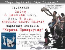 Κύματα προσφυγιάς «Τον ξένο και τον εχθρό τον είδαμε στον καθρέφτη...». Η ΠΑΜΠΕΙΡΑΙΚΗ ΠΡΩΤΟΒΟΥΛΙΑ ΥΠΟΣΤΗΡΙΞΗΣ ΠΡΟΣΦΥΓΩΝ & ΜΕΤΑΝΑΣΤΩΝ σας προσκαλεί στα πλαίσια του φεστιβάλ τέχνης και δημιουργίας