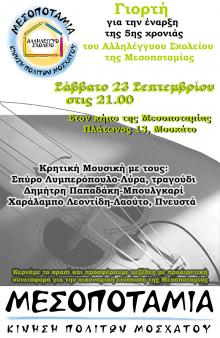 Το Σάββατο 23/9 στις 21.00 σας περιμένουμε στην αυλή της Μεσοποταμίας (Πλάτωνος 13, Μοσχάτο).