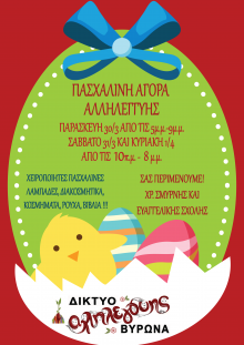 Πασχαλινή Αγορά Αλληλεγγύης από το Δίκτυο Αλληλεγγύης Βύρωνα, στις 30 Μαρτίου (5-9μμ), 31 Μαρτίου και 1η Απριλίου (10πμ-8μμ), Χρυσοστόμου Σμύρνης & Ευαγγελικής Σχολής.